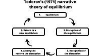 Todorov's Narrative Theory Todorov's Narrative Theory is a theory made in 1971 that consists of the belief of all narratives containing five key factors. An equilibrium, disequilibrium, recognition, r...